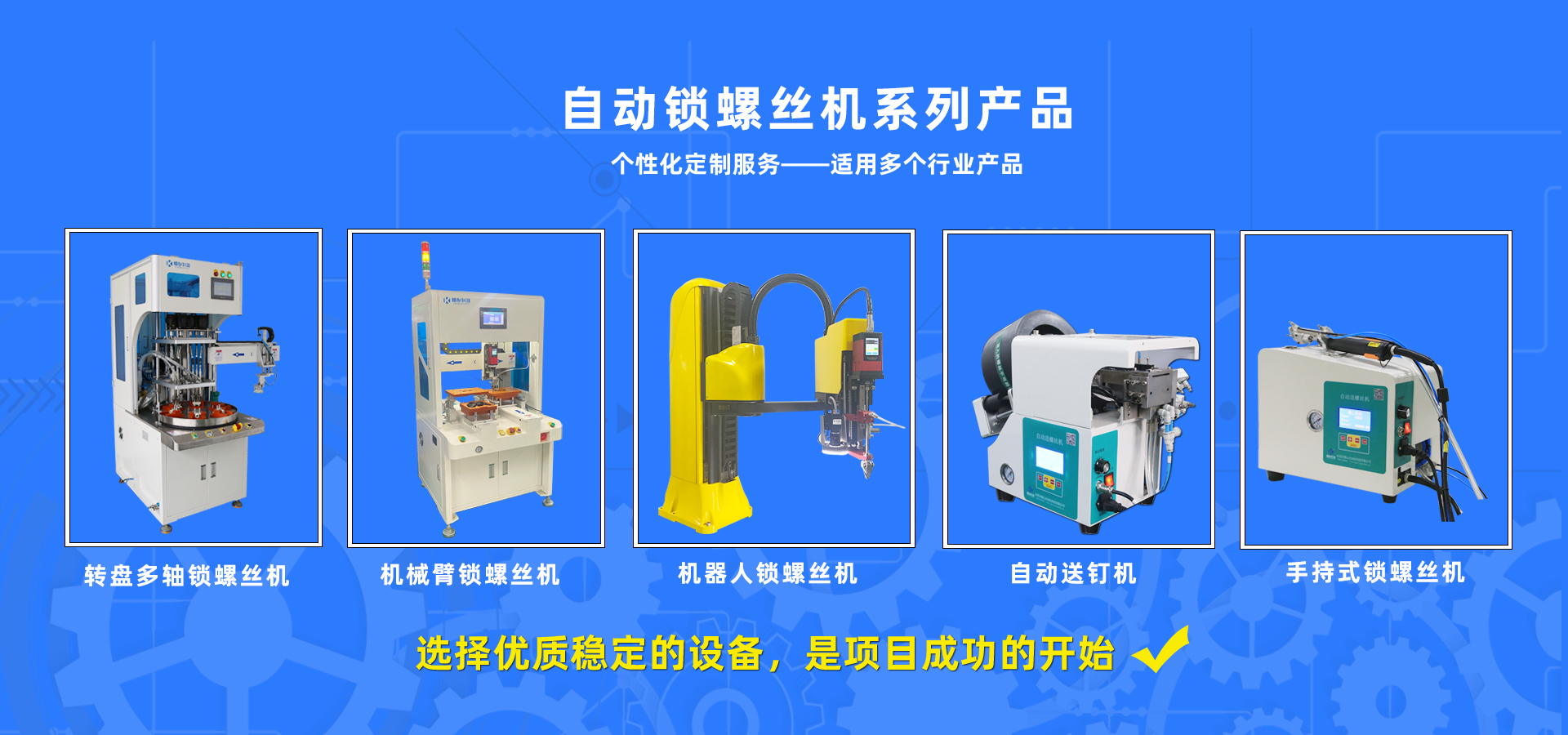精心自動鎖螺絲機共有9大系列,數(shù)10種型號,適應任何行業(yè)的鎖螺絲需求。